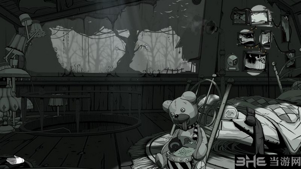 接着你需要控制玩具熊鼓面上的三个图标,调整墙上的影子画。
