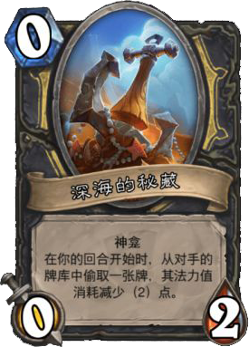 假如你选择了深海的秘藏,这神龛神偷,每次回合开始时可以偷牌,而且减费直接减(2)费,偷到大一点的牌打下去直接就压死了,这局就稳了。