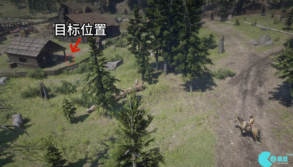 1、我们先来到垂犬牧场,如图所示标点位置,这里是奥德里斯科帮的大本营。
