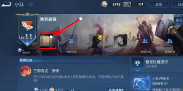 3.接着在进入小队页面时,就可以看见自己的头像了,我们点击自己的头像;