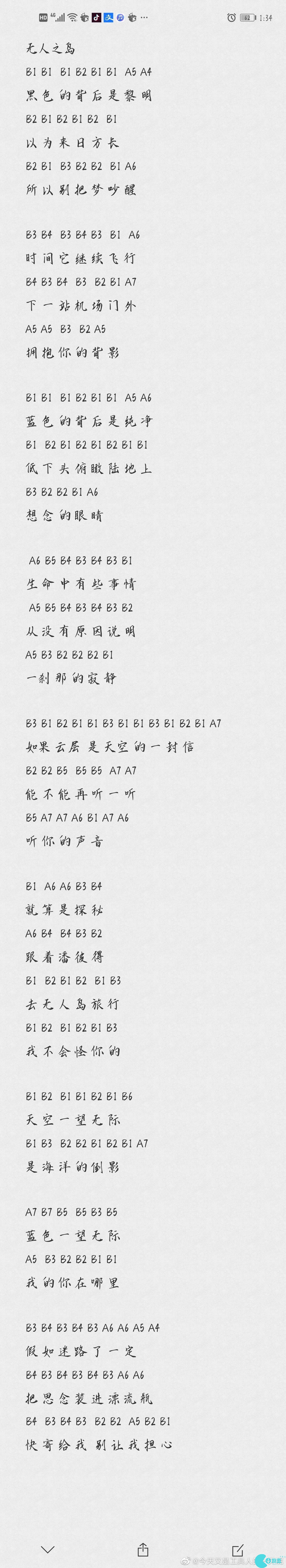 光遇无人之岛琴谱-无人之岛钢琴竖琴谱子完整版分享
