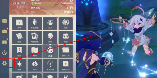 1、玩家们在进入游戏主界面,点击左上角派蒙图标;