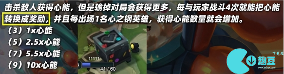 在战斗中击杀敌人可以获得心能,但是若输掉对局会得到更多的心能奖励。每进行四次玩家对战,玩家可以将心能转换成特定的奖励。此外,每上场一位心之钢英雄,玩家将额外获得心能奖励。