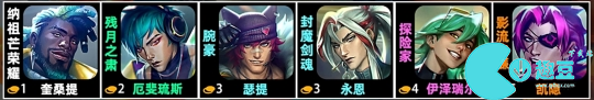 奎桑提、厄斐琉斯、瑟提、永恩、伊泽瑞尔、凯隐