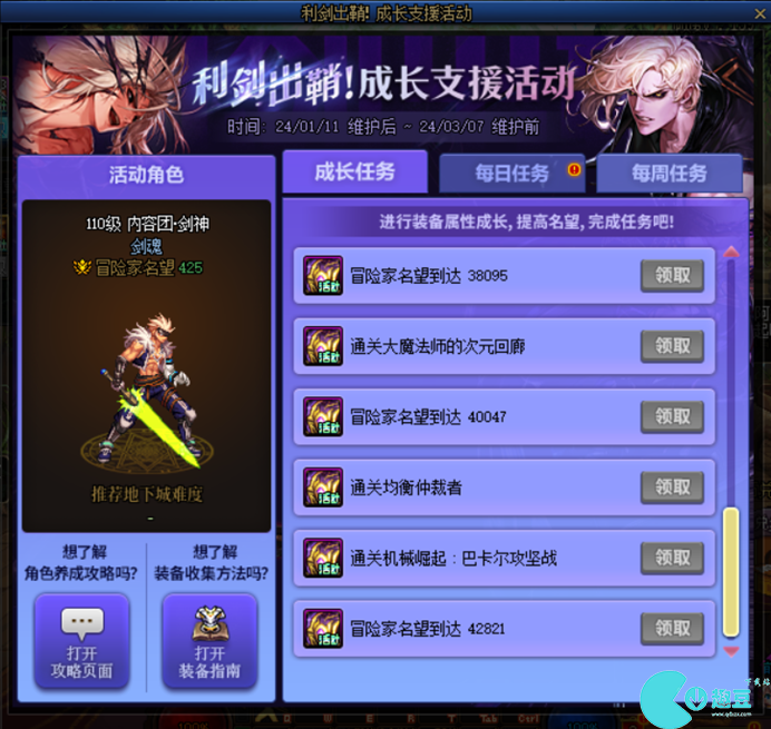 活动绑定的新建角色可以通过活动专属地下城快速升级,在角色到达110级之前没有任务,也无法进入常规地下城,升级过程中可以使用升级券与经验胶囊。