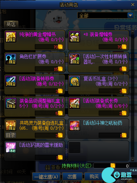 在活动时间内,玩家可以在赛丽亚的特备商店中使用极少的金币兑换各类奖励。