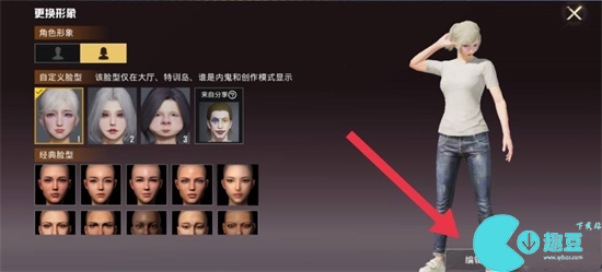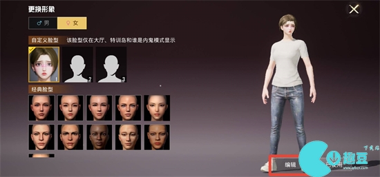 2、在弹出页面的更换形象中随机选择一个自定义脸型,点击右下角的编辑。