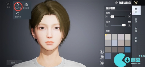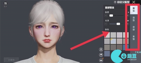 3、这时会进入到自定义编辑中,接着就可以利用右侧的四个种类进行捏脸,捏脸成功后点击保存即可。